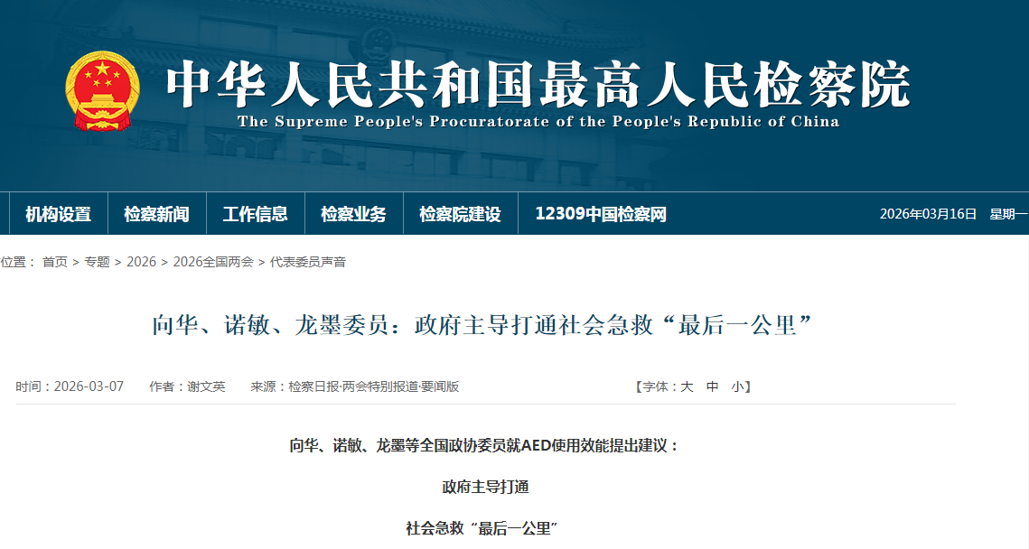 2026年全国两会聚焦民生保障,公共安全治理与社会急救体系建设成为热议议题。心搏骤停抢救的“黄金4分钟”是生命救援的关键,当前AED配置“找不到、不会用、管不好”的痛点,制约着院外急救效能。两会明确将公共安全体系建设与应急救护设备普及纳入民生重点,智能急救站作为整合AED、智能管理与急救服务的一体化方案,成为打通社会急救“最后一公里”、破解公共急救难题的关键抓手。