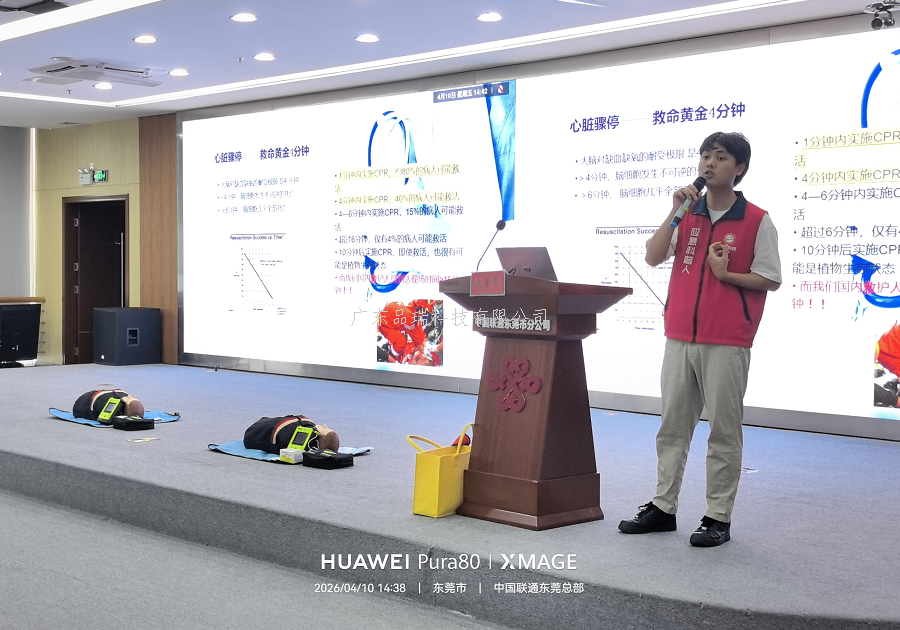 广东品瑞科技继中国联通东莞总部配置AED工作后于2026年4月10日下午,品瑞急救辅导老师受邀走进中国联通东莞总部,为全体职员开展应急救护专项培训,以专业技能赋能职场安全,切实提升员工应急处置能力。