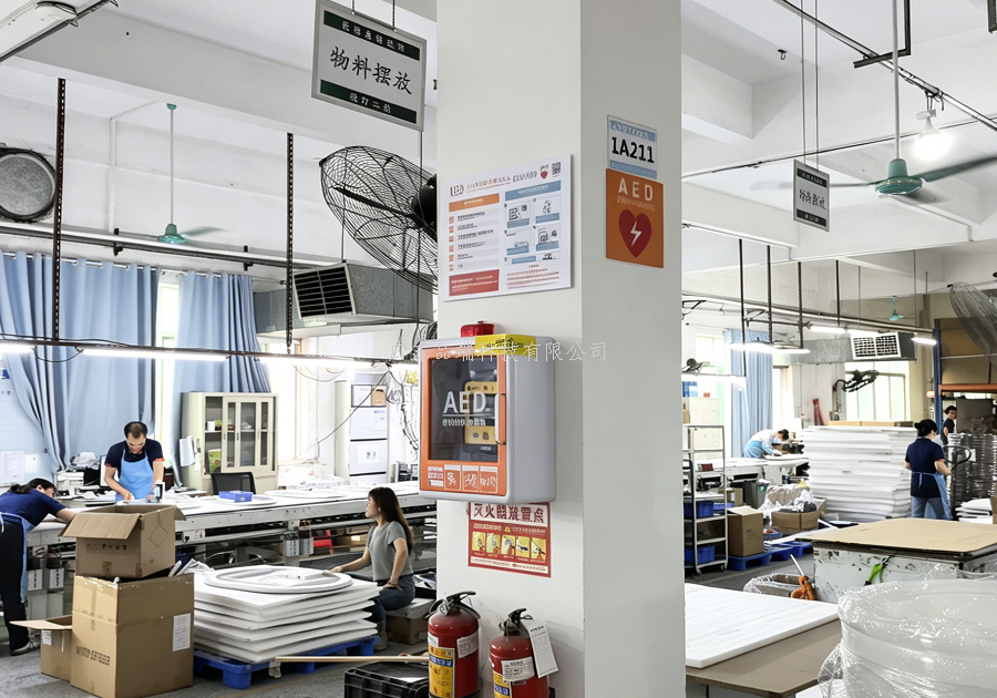 莱姆森建材是一家深耕智能卫浴镜领域的老牌企业,成立于2005年,还是国家高新技术企业、广东省专精特新中小企业,员工有大约200多人,产品远销全球20多个国家。厂区里人员密集,平时大家工作忙碌,万一出现心脏骤停等突发情况,每一秒都关乎生命。