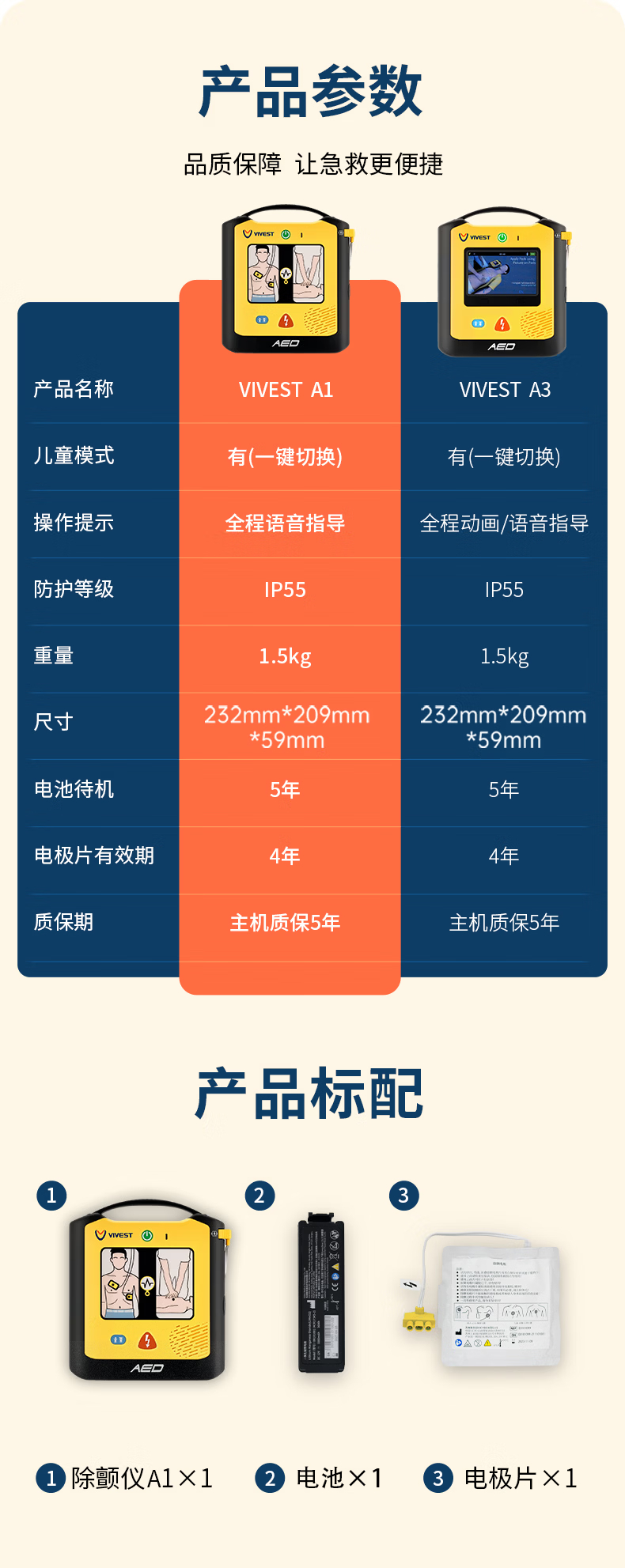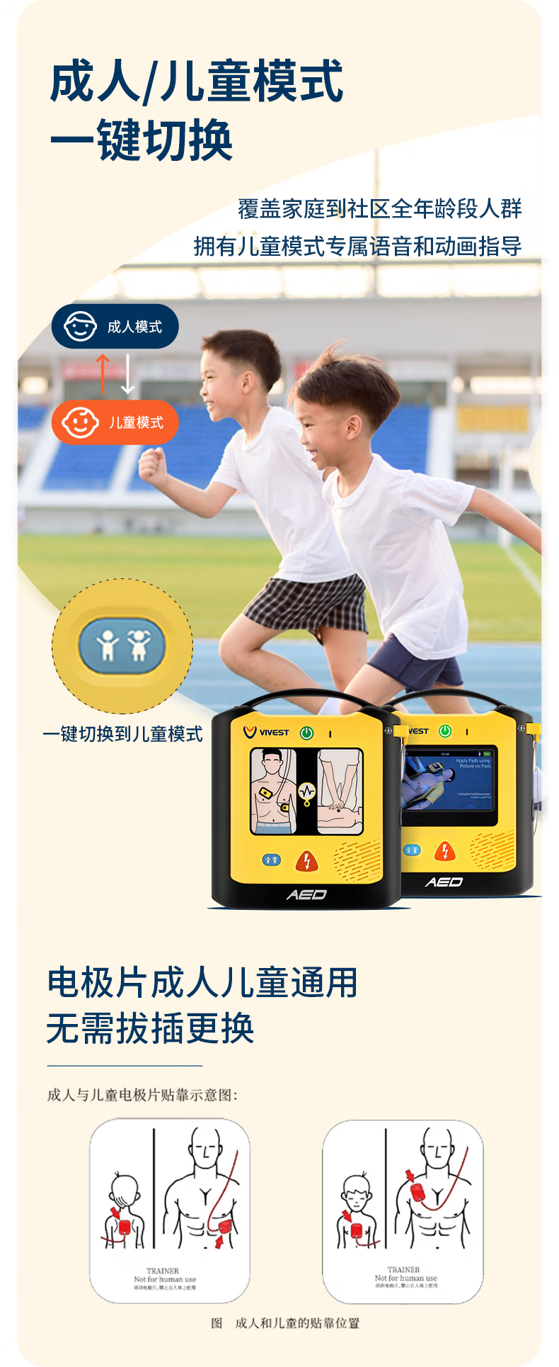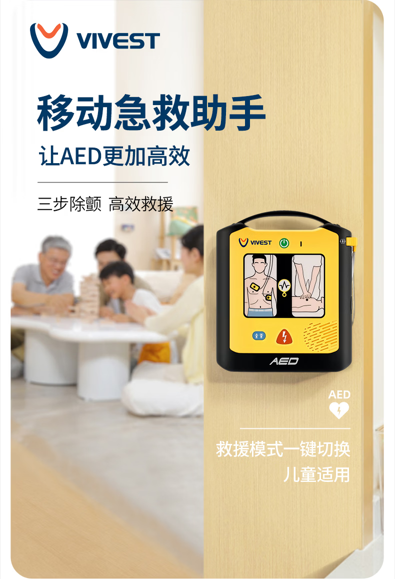 ​2026 全新维伟思 PowerBeat A1 AED,适用场景全面升级,覆盖医疗、校园、办公、户外等全场景,兼容成人与儿童双模式。设备性能大幅跃升,采用智能双相波技术,7 秒极速除颤,IP55 防尘防水、1.5 米抗摔,5 年长待机电池与 4 年电极寿命,更稳定耐用,急救保障更强大。